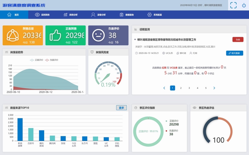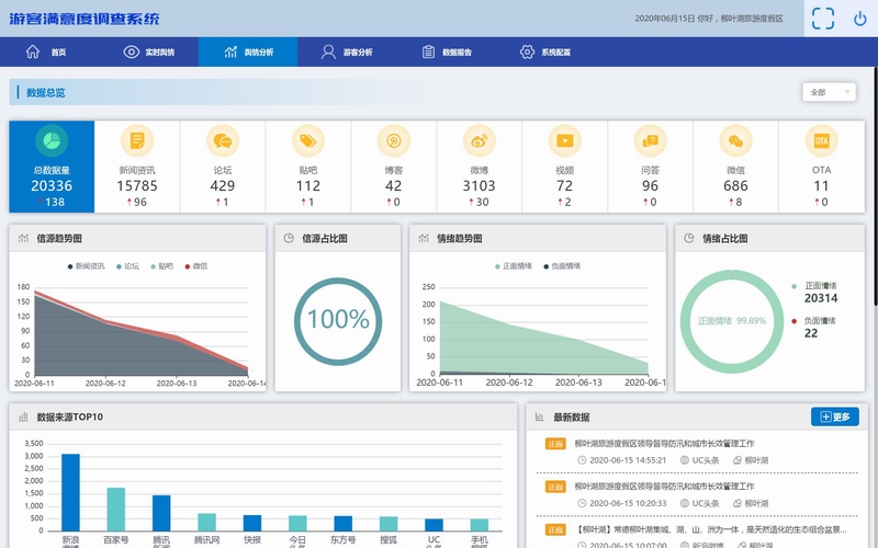 采集主流互聯(lián)網(wǎng)渠道上關(guān)于旅游景區(qū)、住宿、餐飲等方面的評(píng)價(jià)數(shù)據(jù)。得出游客對(duì)景區(qū)、酒店、餐飲等主要旅游要素的正面、負(fù)面、中性評(píng)價(jià)。識(shí)別各景區(qū)、酒店、餐飲網(wǎng)絡(luò)形象變化、市場(chǎng)優(yōu)勢(shì)和短板所在。