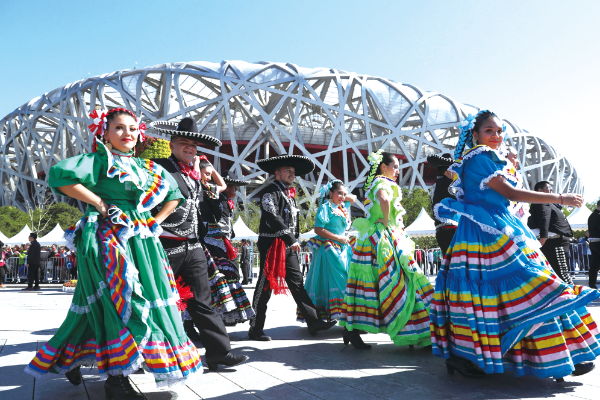 △ 2018年10月1日,第二十屆北京國際旅游節在北京奧林匹克公園慶典廣場拉開帷幕,國內外團隊的精彩演出令現場游客叫好。盛佳鵬攝