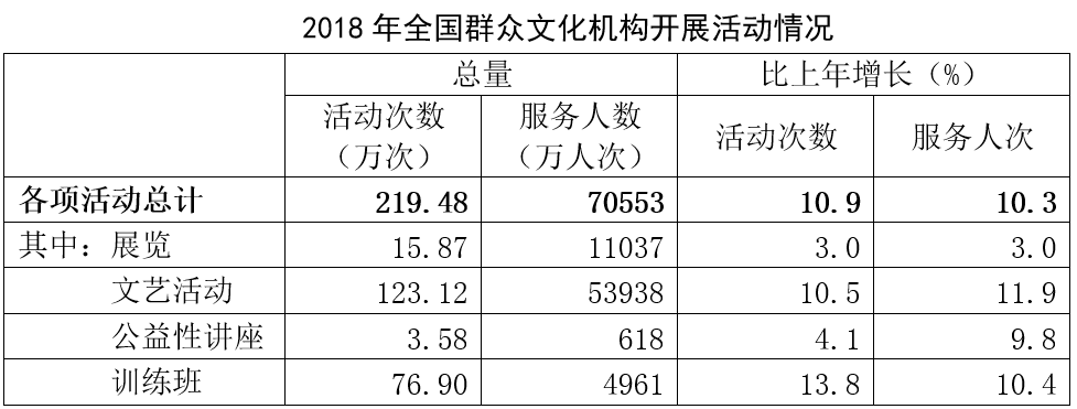 文化和旅游部2018年文化和旅游發(fā)展統(tǒng)計(jì)公報(bào)發(fā)布(附全文)
