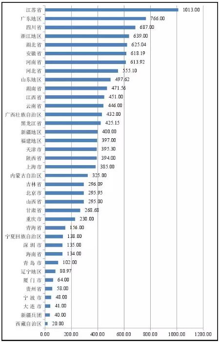從發行地區和規模看,截至4月末發行的新增地方政府債券完成2019年新增限額30,800億元的42.01%,完成提前下達部分2019年新增地方債務限額13,900億元的93.09%。從1-4月新增地方政府債券發行規模(分地區)看,江蘇省、廣東省和四川省位居前三位。