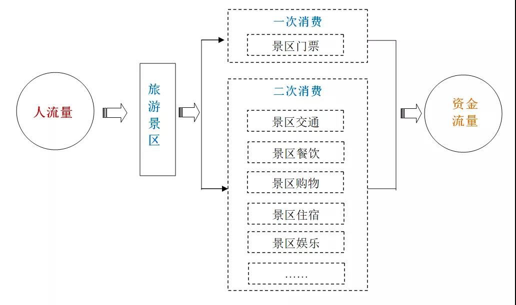 旅游景區轉化人流量的一次消費與二次消費是顯而易見的。旅游景區是通過門票形式進行的一次消費,實現的景區人流量向景區資金流量的轉變。