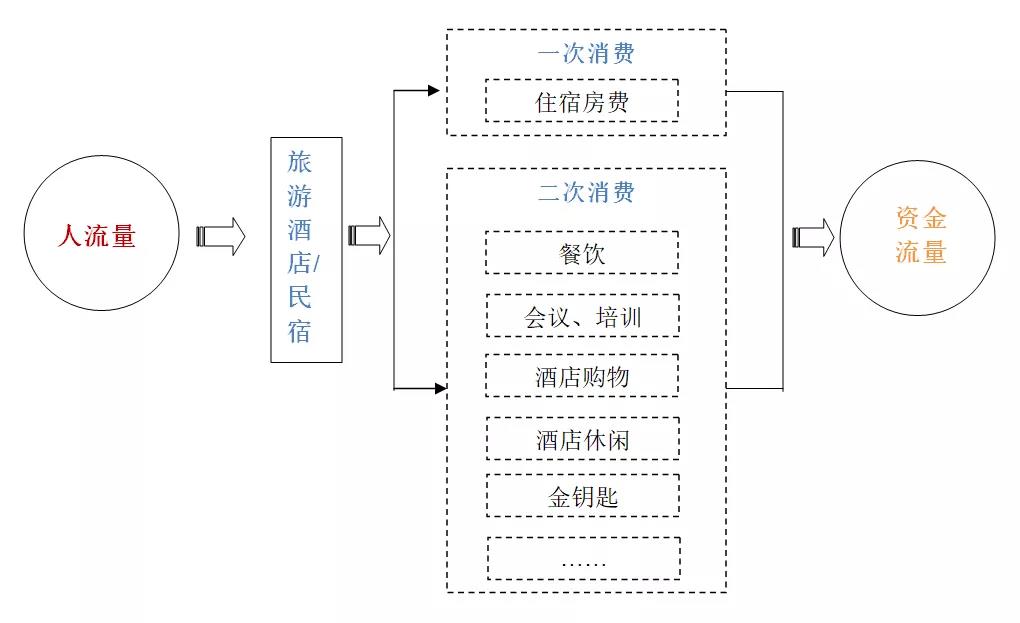 旅游酒店業的二次消費是指除房費外的,其他將人流來那個轉化為資金流量的消費。首當其沖的就是餐飲,在入住率較高的酒店/民宿中,能夠通過餐飲有效的轉化酒店/民宿的人流量,很多的酒店/民宿,甚至直接將早餐或晚餐放在房費里一攬子打包(越是偏僻的酒店越適合使用),從而實現這個二次消費。另外,近年來會議、培訓也成為旅游酒店業的重要的二次消費。還有旅游酒店休閑服務、購物服務、金鑰匙服務等都是旅游酒店的二次消費。