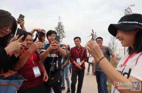 網媒記者在燕坊古村采訪(舒言誠拍攝)