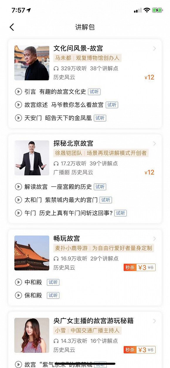 而對(duì)于景區(qū)來(lái)說(shuō),來(lái)源更多樣化的語(yǔ)音講解,也是景區(qū)正經(jīng)歷變革的一方面。國(guó)內(nèi)景區(qū)的語(yǔ)音導(dǎo)覽,從最早付費(fèi)聘請(qǐng)導(dǎo)游舉著話筒每天重復(fù)相同內(nèi)容,逐漸變成掃描二維碼聽(tīng)線上語(yǔ)音,再過(guò)渡到從多樣化的解說(shuō)里挑選自己想聽(tīng)的,獲取景點(diǎn)背景知識(shí)。
