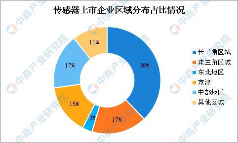 傳感器市場前景廣闊,國內(nèi)企業(yè)紛紛布局其中。目前,我國傳感器上市企業(yè)多達66家,主要集中在長三角區(qū)域。此外,珠三角區(qū)域、京津地區(qū)、中部地區(qū)分布相當。據(jù)統(tǒng)計,長三角區(qū)域傳感器上市企業(yè)占比達38%,有企業(yè)25家;珠三角區(qū)域占比17%,有企業(yè)11家;中部地區(qū)同樣占比17%,有企業(yè)11家;京津地區(qū)占比15%,有企業(yè)10家;東北地區(qū)占比3%,有企業(yè)2家。