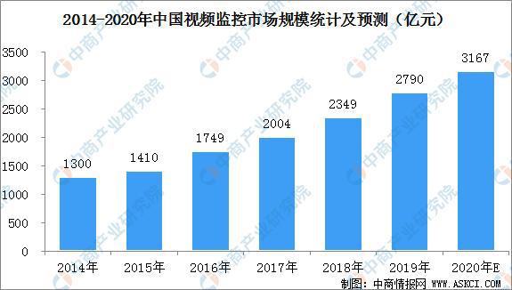 近年來,我國監(jiān)控系統(tǒng)市場經(jīng)歷了持續(xù)強勁的發(fā)展。其中,視頻監(jiān)控市場的發(fā)展速度超過全球其他地區(qū)。據(jù)數(shù)據(jù)統(tǒng)計,2012-2016年我國視頻監(jiān)控行業(yè)增長率均保持在15%以上。2017年,我國視頻監(jiān)控市場規(guī)模突破2000億元。初步估算2019年,中國視頻監(jiān)控市場規(guī)模達到2790億元。中商產(chǎn)業(yè)研究院預計,到2020年底,全國視頻監(jiān)控市場規(guī)模將突破3000億元。