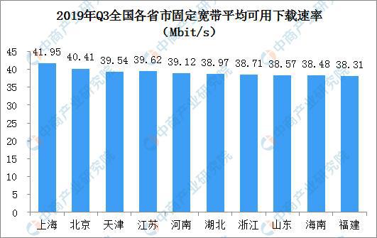 截至2019年第三季度,全國光纖寬帶用戶占比超過91%,寬帶用戶持續(xù)向高速率遷移,100Mbps及以上接入速率的固定互聯(lián)網(wǎng)寬帶接入用戶已占總用戶數(shù)的80.5%;4G用戶占移動電話用戶已達79.1%,這些指標均位居全球前列。固定寬帶下載速率方面,上海、北京、天津位列全國前三位,且上海、北京已率先超過了40Mbit/s,江蘇、河南緊隨其后。全國主要城市排行榜上,上海、北京、南京、鄭州、天津位居前五位。