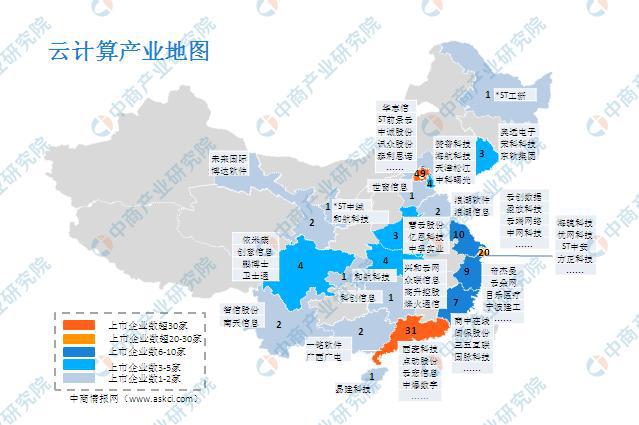 從云計算產(chǎn)業(yè)的企業(yè)分布來看,目前全國各省市范圍內(nèi)均有分布。其中云計算企業(yè)分布主要以北京以及東部沿海地區(qū)為主。據(jù)中商產(chǎn)業(yè)研究院數(shù)據(jù)統(tǒng)計顯示,云計算企業(yè)分布最多的是在北京,數(shù)量近50家;其次,廣東省則分布有31家,上海為20家,其余省份均在10家及以下。