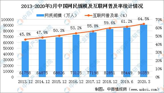 隨著智能手機的大力推廣和普及,推動著移動互聯(lián)網(wǎng)市場規(guī)模的進一步擴張,用戶規(guī)模不斷攀升。互聯(lián)網(wǎng)行業(yè)持續(xù)穩(wěn)健發(fā)展,互聯(lián)網(wǎng)已成為推動我國經(jīng)濟社會發(fā)展的重要力量。據(jù)《中國互聯(lián)網(wǎng)絡發(fā)展狀況統(tǒng)計報告》數(shù)據(jù)顯示:截至2020年3月28,我國網(wǎng)民規(guī)模為9.04億,較2018年底新增網(wǎng)民7508萬,互聯(lián)網(wǎng)普及率達64.5%,較2018年底提升4.9個百分點。