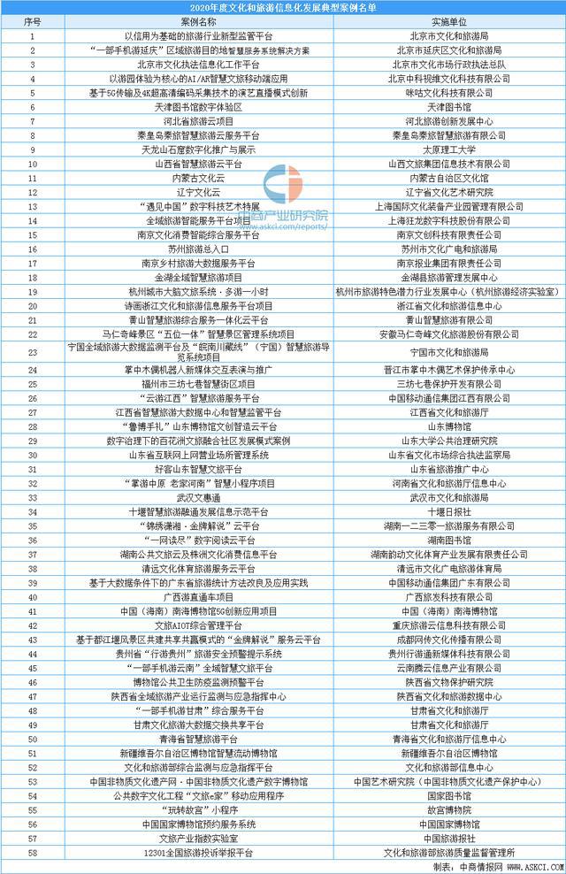 近日,文化和旅游部科技司發(fā)布了《2020年度文化和旅游信息化發(fā)展典型案例名單》,確定“以信用為基礎的旅游行業(yè)新型監(jiān)管平臺”等58個案例為2020年度文化和旅游信息化發(fā)展典型案例。