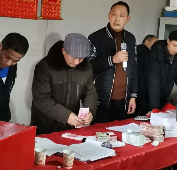 夾山鎮(zhèn)楊坪社區(qū)楊坪一組“騰達(dá)土地專業(yè)合作社”2019年年終分紅現(xiàn)場(chǎng)。受訪者供圖