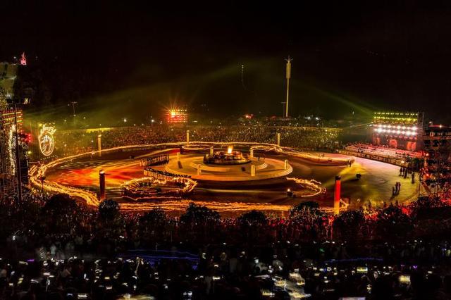 火把廣場占地兩萬四千平方米,包括篝火廣場、觀禮臺、祭火臺、九鼎神柱等。每年農歷六月二十四,全國近50萬彝族同胞匯聚于此,舉辦彝族最隆重的節日——火把節。由火把廣場、太陽歷廣場、希慕遮廣場、彝族歷史文化博物館(九重宮殿)構成的海坪彝族文化園是黔西北彝族文化的博物館、生態園,是彝族人民交流學習、傳承歷史文化的聚會中心。