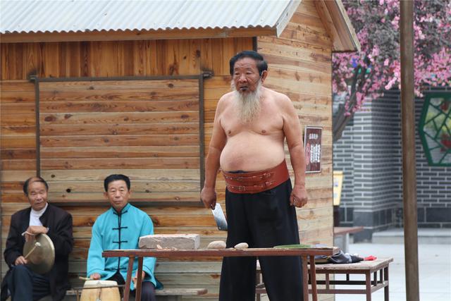 在吳橋雜技大世界江湖文化城里,年近古稀的老藝人高福洲一邊敲鑼,一邊唱著鑼歌與觀眾互動?!熬毢昧耸禽p氣功,練不好就是剖腹產了。”他經常在表演“肚皮上切菜”時這樣開玩笑說。