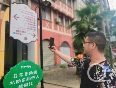 9月8日,上游新聞·重慶晨報(bào)記者在紅酒小鎮(zhèn)景區(qū)看到,景區(qū)主入口和各個(gè)主要道路都張貼了二維碼。譚洪玲介紹,通過掃描這個(gè)二維碼即可獲取景區(qū)電子地圖,開啟游玩模式。