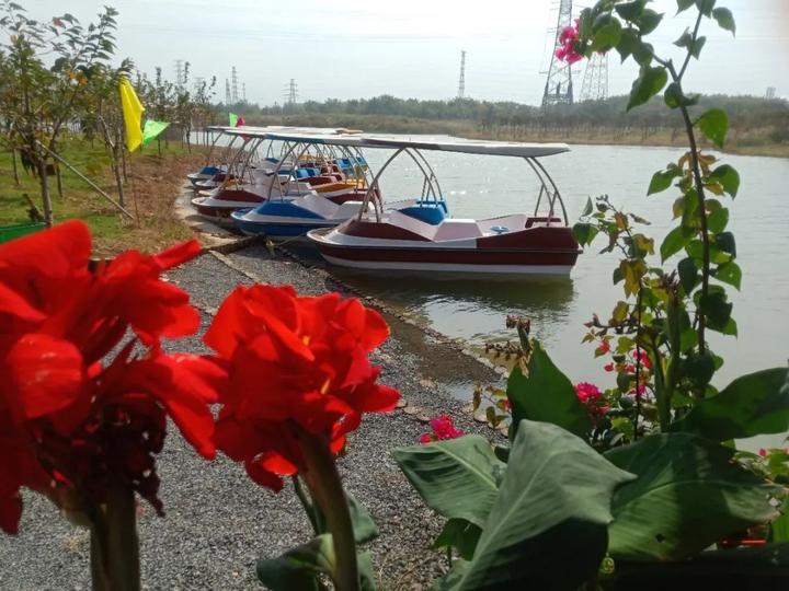 “今年國(guó)慶期間,光游輪、蹦蹦床每天有5000多元的經(jīng)營(yíng)收入。每逢周末、節(jié)假日,村里10余家農(nóng)家樂家家爆滿。這在以前想都不敢想!”10月20日,記者來到了花園街道新姜村,秋日暖陽(yáng)下,西棲港碧波蕩漾,湖上船只井然排列,岸邊早櫻枝葉蔥蘢,小木屋旁的蹦床上游客歡樂嬉戲......