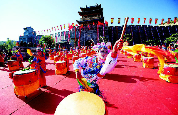 青龍古鎮(zhèn)民俗活動(dòng)吸引游客前來(lái)旅游。鄧寅明攝