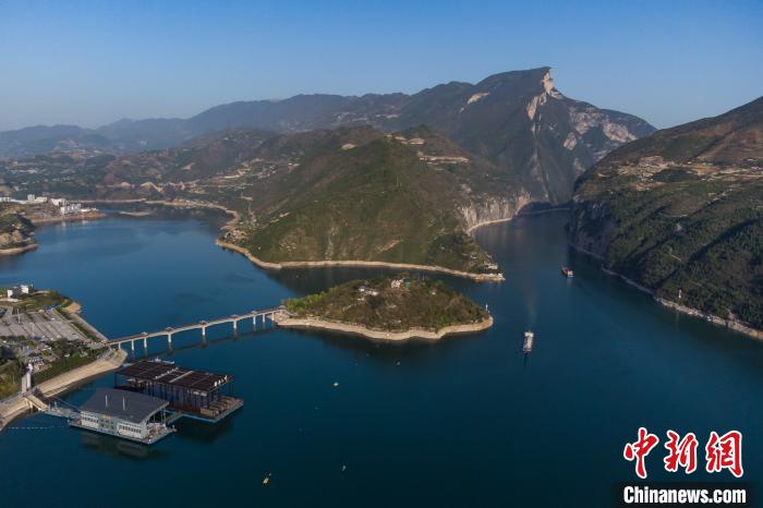 圖為航拍夔門與白帝城?!『闻罾?攝