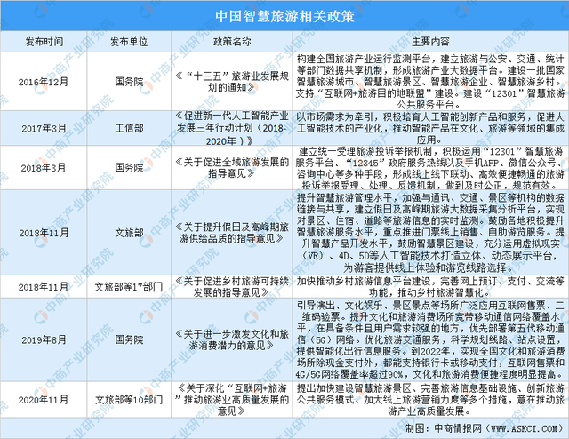 國家重視智慧旅游產業發展,出臺了《“十三五”旅游業發展規劃的通知》、《國務院辦公廳關于促進全域旅游發展的指導意見》、《國務院辦公廳關于進一步激發文化和旅游消費潛力的意見》《關于深化“互聯網 旅游”推動旅游業高質量發展的意見》等政策,鼓勵和引導智慧旅游產業發展。
