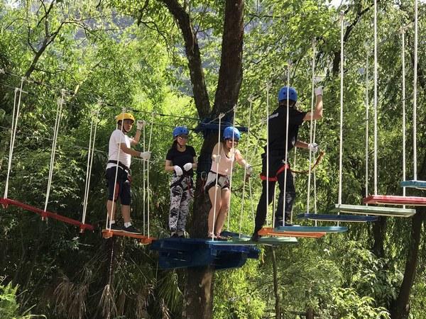 游客在南江大峽谷體驗運動項目。開陽縣委宣傳部供圖