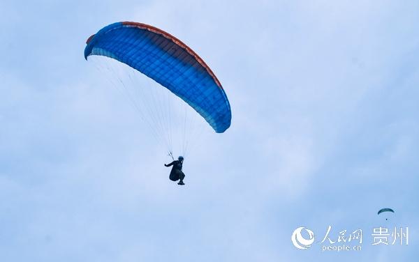 滑翔傘愛好者在開陽禾豐鄉云中君滑翔傘基地體驗。人民網 王秀芳攝