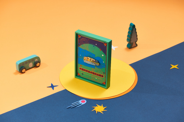 外包裝印著恐龍圖案,有著鮮明清新的色彩,里面其實(shí)是漢堡包;橙紅底色上的螃蟹,馱著老字號(hào)中文招牌;淡綠色紅耳龜 " 何小涌 ",龜殼是菠蘿包、杏仁餅;白底藍(lán)字街牌、深綠色垃圾桶模型,對(duì)應(yīng)的是澳門日常物件。