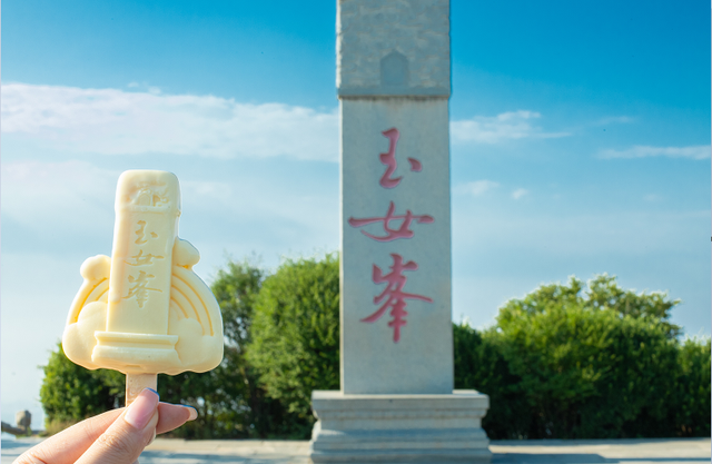 創意取自游客登臨花果山必達的江蘇最高峰— —玉女峰的標志原型,將“玉女峰”三個大字完整復刻至文創雪糕,香草味的玉女峰,散發著香氣。