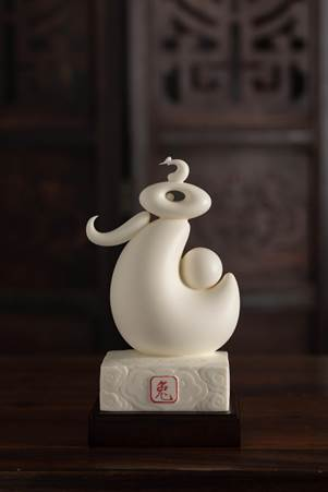 在眾多生肖兔瓷文創(chuàng)產(chǎn)品中,福建省陶瓷藝術(shù)大師彭成雄的作品頗具特色。他將生肖文化、陶瓷文化與漢字文化完美融合,設(shè)計(jì)成一款漢字造型的“中華兔尊”。同時(shí),他還通過(guò)瓷雕技藝,將二維的線條、結(jié)構(gòu)以立體的形態(tài)表現(xiàn)出來(lái),更好地展現(xiàn)整體順滑、圓潤(rùn)、飽滿的視覺(jué)效果,并且從造型上呈現(xiàn)一種近似象形文字的趣味感,讓欣賞者產(chǎn)生無(wú)限的想象空間。