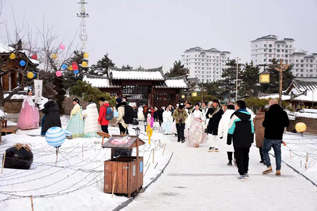 每天,位于延吉市的中國朝鮮民俗園一開門就熱鬧起來,欣賞青瓦飛檐的朝鮮族建筑、體驗(yàn)制作朝鮮族美食……各個(gè)朝鮮族服裝店外排滿了來自四面八方的游客,等著穿上朝鮮族服飾拍照留念。其中一家店鋪的負(fù)責(zé)人介紹,春節(jié)期間,來店里租衣服、拍照打卡的游客特別多,每天不到8點(diǎn)店外就排起了長(zhǎng)隊(duì),平均每天都能接待三四百人。