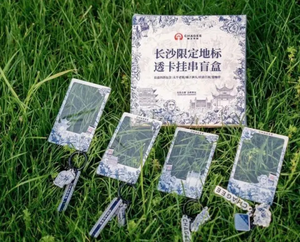 “霸王茶姬”在湖南推出了一款長沙限定地標透卡掛串盲盒,內含太平老街、杜甫江閣、愛晚亭等特色地標,還有隱藏款式,購買雙大杯伯牙絕弦可得,利用年輕人對盲盒的好奇心,既拉動了產品銷量,同時也展現了湖湘文化的魅力。