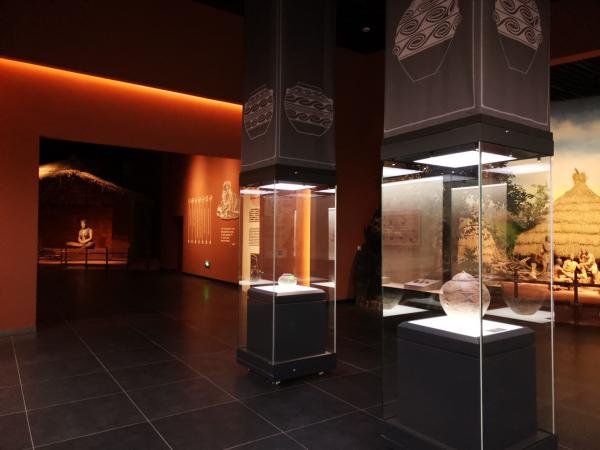 牛河梁遺址博物館位于全國重點文物保護單位牛河梁國家考古遺址公園內,是一座現代化的紅山文化專題性遺址博物館,集文物收藏保護、學術研究和社會教育多種功能于一體,結合現代展示技術手段,集中展示牛河梁遺址考古發掘的成果。