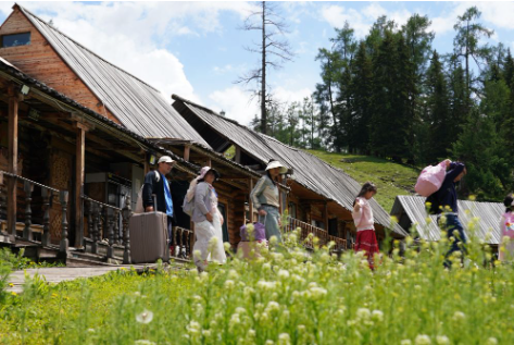 初夏午后,阿爾泰山蒼翠欲滴,牛羊成群。新疆哈巴河縣齊巴爾鎮吉林新村人頭攢動,來自五湖四海的游客走進電視劇《我的阿勒泰》拍攝地,尋找“詩與遠方”。
