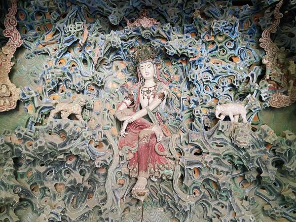 “京外名剎之首”隆興寺。在集建筑、雕塑、壁畫藝術于一身的摩尼殿內,被稱作“東方美神”的倒坐觀音,坐南朝北,體態松弛,神情閑適。隆興寺大悲閣內,有我國現存最高大、最古老的銅鑄立佛——千手千眼觀音銅像。當年,宋太祖趙匡胤下令鑄造大悲菩薩銅像,這尊高達21.3米的銅像,歷時4年完成,體現出工匠的創造性。