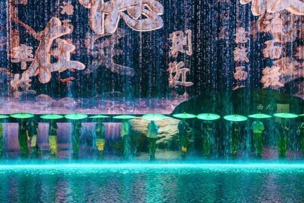 《月映武夷》的舞臺是目前中國國內(nèi)跨度最大、面積最大的室內(nèi)高科技多媒體沉浸式水舞臺,通過全電腦機(jī)械舞臺的精密連接,機(jī)械、水幕、數(shù)控、光影精妙互動,重構(gòu)水墨丹青的東方美學(xué)意境。未來,《月映武夷》將作為文旅演藝項目駐場演出,在武夷山亮相。