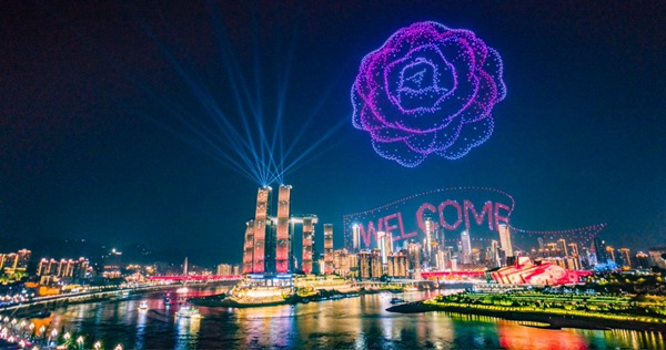 水晶連廊的探索艙·云端樂園推出“云中漫步升級版”,游客可在全透明玻璃步道上俯瞰兩江四岸夜景,體驗“伸手摘星”的震撼。2023年末新增的“全國首座橫向摩天樓高空步道”,進一步強化了高空觀景的獨特性。此外,無人機燈光秀以兩江為幕布,將橋都元素、地標(biāo)符號融入光影藝術(shù),單日客流同比增幅達30%。