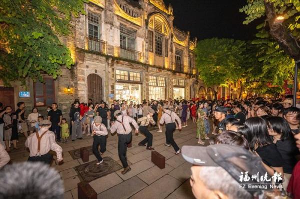 福州文旅嘉年華現(xiàn)場,夜幕降臨后,“快樂場”氛圍拉滿,造型靈動的魚燈在古厝街巷間巡游,民樂快閃隊伍奏響《花好月圓》,與游客一同哼唱,盡顯中秋團(tuán)圓暖意。走出活動現(xiàn)場,游客可于鼓嶺的清風(fēng)薄霧間舒暢身心,在下沙的海濱嬉戲中重拾童真,在煙臺山的時尚街區(qū)邂逅新潮。