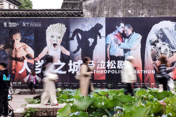 第十二屆烏鎮戲劇節不僅是中國戲劇的展示,更是一場國際性的文化藝術交流盛宴。來自世界各地的戲劇作品在此碰撞、交融,架起了一座中外文化交流的橋梁。作為本屆烏鎮戲劇節的開幕大戲,來自德國漢堡德意志劇院的《人類之城馬拉松劇》由導演卡琳·拜爾與劇作家羅蘭·施梅芬尼耗時五年打磨而成。包括演員、技術人員、鼓隊、歌隊在內的150余名中德兩國劇組成員相聚在烏鎮,合力為觀眾呈現了“馬拉松式”的精彩演出。